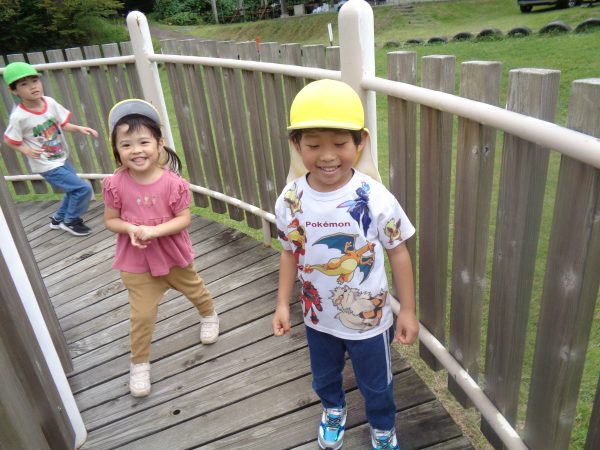 秋の遠足🚌(パート2) 2025年10月02日 鬼ごっこ楽しいな♪ 滑り台サイコー‼ 「これな~に?」こんなの見つけたよ⁉ クライミングに挑戦~‼ 「やっほー!」た~のしい~♡ お弁当タイム🍚 お弁当美味しすぎる~♡♡ ぱんだ組は、プレイルームでおままごとやおもちゃ遊びに夢中で時間があっという間に過ぎちゃったね(笑) ぞう組&らいおん組は、縦割りチームで白熱のリレー対決‼ 保育園に帰りま~す!楽しかったね♪