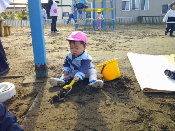 歩けるようになったひよこ組さんは、靴を履いて園庭を歩き回ったり散歩をして公園に遊びに行ったりと、秋のお外遊びを楽しみました。好き嫌いなく何でも食べて、いっぱいお昼寝するひよこ組さんは毎日元気に過ごしています。
