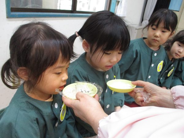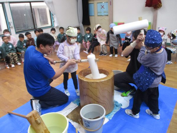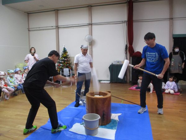 先日保育園でおもちつきをしました!今年も近藤さん、蓮池さんに来ていただきました。