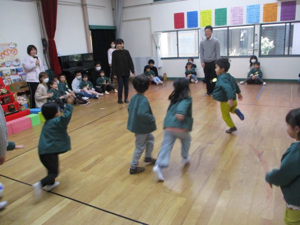 2月18日(水)3・4・5歳児の保育参観を行いました☺親子で楽しめる簡単なゲームや名人発表など、各クラスで楽しみました♪お家の方が見に来てくれるのを心待ちにしていた子どもたち♡短い時間でしたが一緒に過ごすことができ、たくさんの笑顔が見られました✨どのクラスも大盛り上がり!!子どもたちの成長した姿を見ていただくことができたのではないでしょうか(*^-^*)