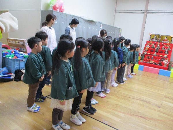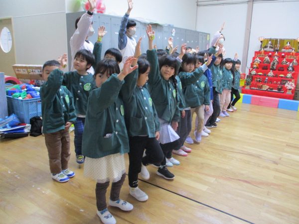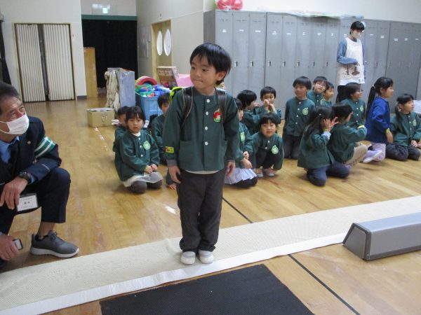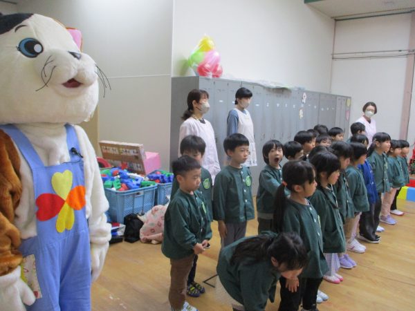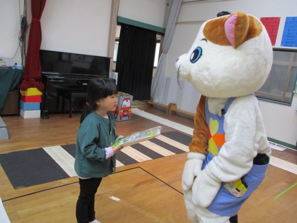 ネコのミーちゃんと一緒に、道路の歩き方や横断歩道の渡り方などを教えてもらいました!道路は歩道を歩く、横断歩道に来たら必ず「とまる」、歩きながらも車が来ないか右左を確かめて歩く…などなど、大切なことをたくさん教えてもらいました😊らいおん組さんは4月からいよいよ小学生です🌸今日教えてもらった事を守って、元気に学校に通ってね✨