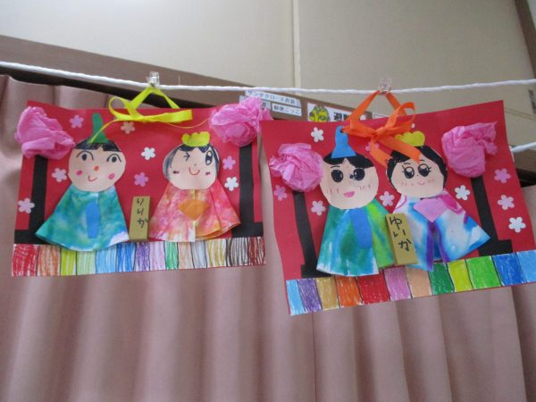ひなまつり製作🎎 2026年02月27日 もうすぐ3月3日ひなまつりですね♪お部屋からは「あかりをつけましょ ぼんぼりに~♪」と子どもたちのかわいい歌声が聞こえてきています!お部屋の中には子どもたちの作った雛人形を飾ったので紹介します(*^-^*) ☆ひよこ組☆ ☆りす組☆ ☆こあら組☆ ☆ぱんだ組☆ ☆ぞう組☆ ☆らいおん組☆