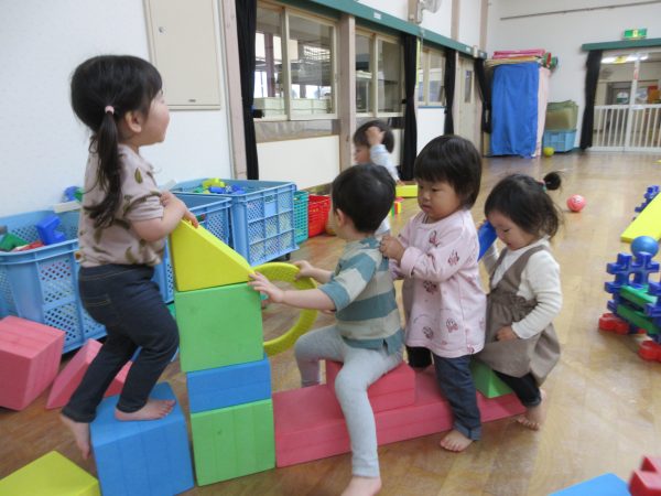 2日目は、未満児組はブロック取りゲーム、幼児組はブロック取りゲーム&ブロック積みゲームを行いました☆ひとつずつブロックを自分のチームに運んだり、倒さないようにと慎重にブロックを積んだりドキドキワクワクしながらチームで頑張りました!幼児組さんは最後におやつバイキングご招待けんもゲットしましたよ!😊
